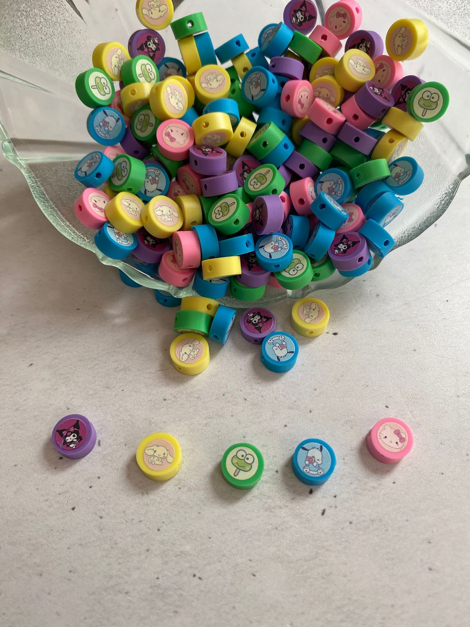 20 unidades de cuenta de arcilla personajes variados de Sanrio, Son realizadas a mano por lo cual cada cuenta puede variar entre si.