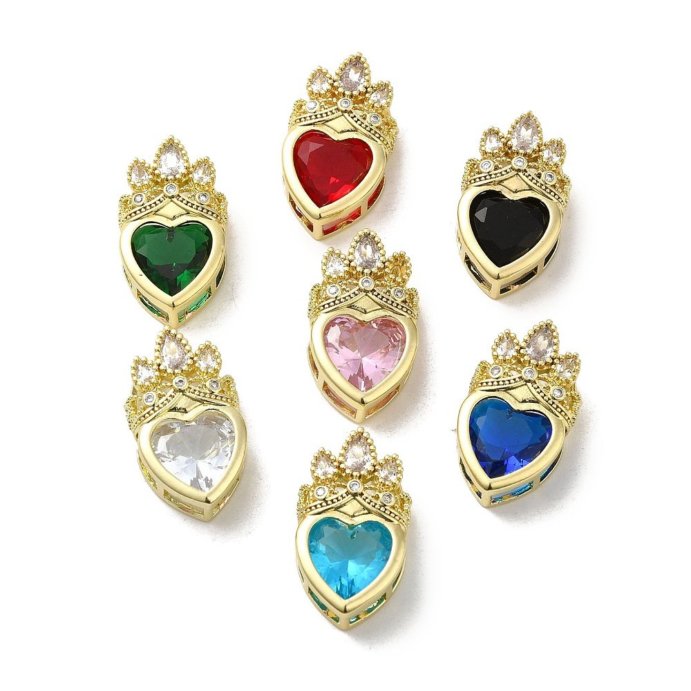 Dije colgante Corazón con corona con cristal chapado en oro real 18k (7 Colores)