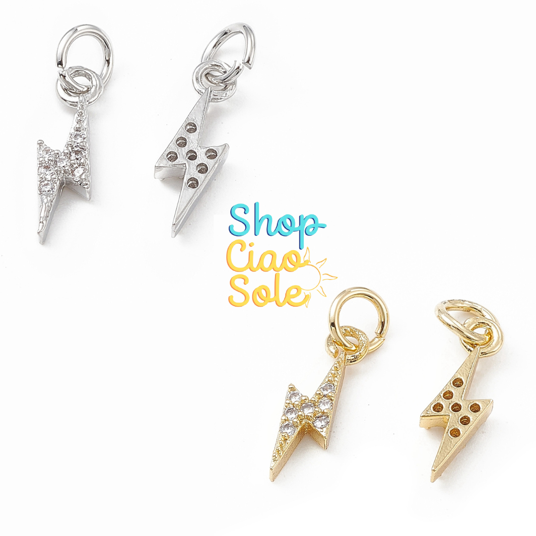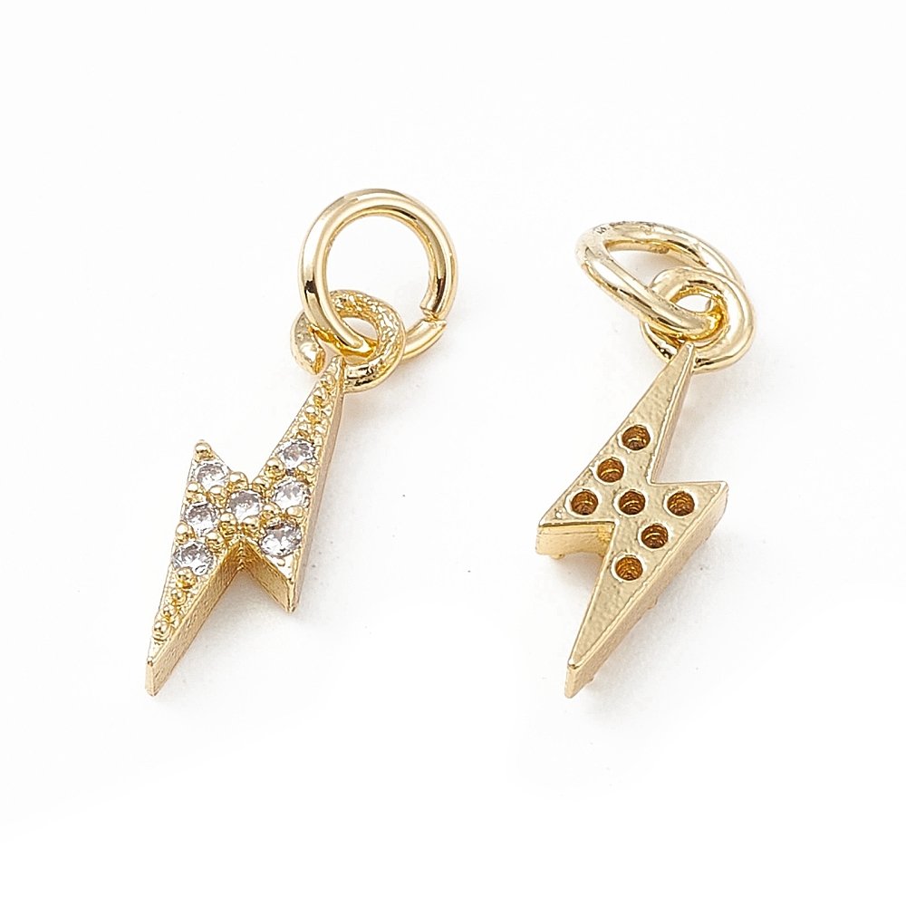 Dijes de latón con micropavé de circonitas cúbicas, dijes de rayo, chapados en oro auténtico de 18 quilates el dorado y el plateado baño de platino.