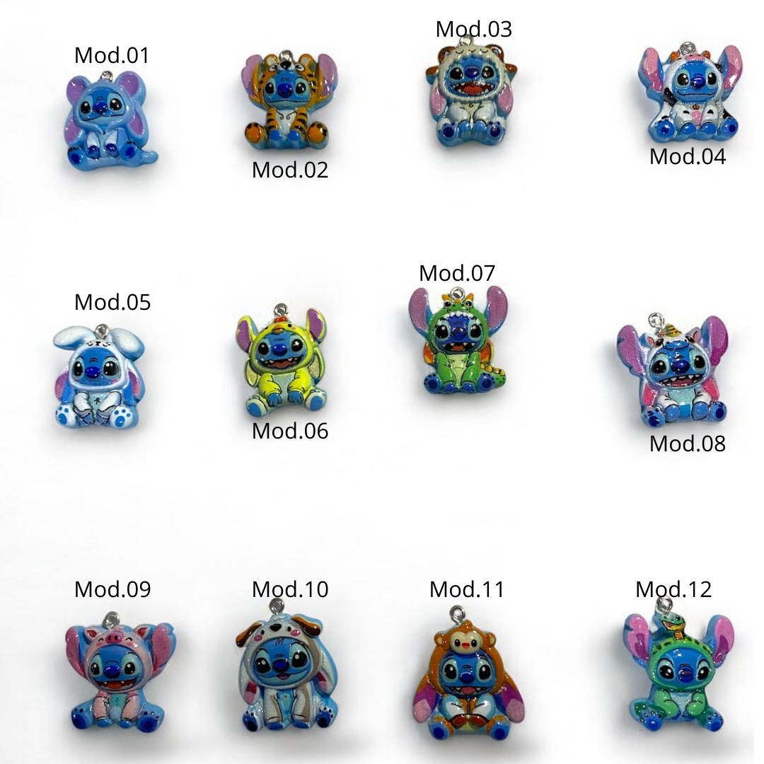 Dijes par con forma de Stitch con pijamas de diferentes animales 12 modelos disponibles, precio por par (2 unidades).